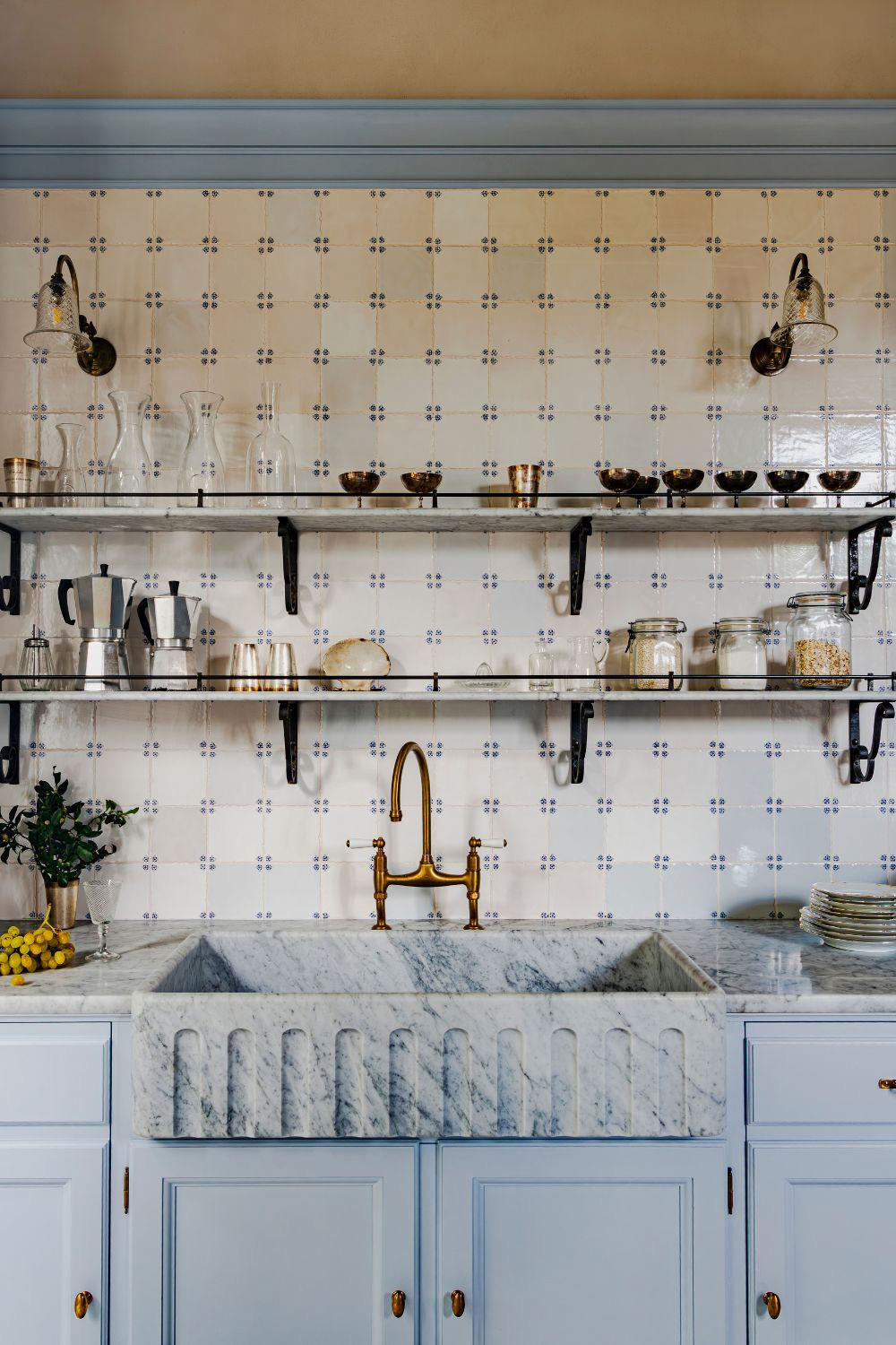The handmade nature of the tiles becomes particularly evident in moments of close inspection, where light catches the glaze and subtle tonal shifts emerge across the surface. This interplay between uniformity and variation brings warmth and humanity to the kitchen, softening clean lines and adding a sense of lived-in elegance. Over time, these qualities only deepen, allowing the tiles to age gracefully alongside the rest of the interior.