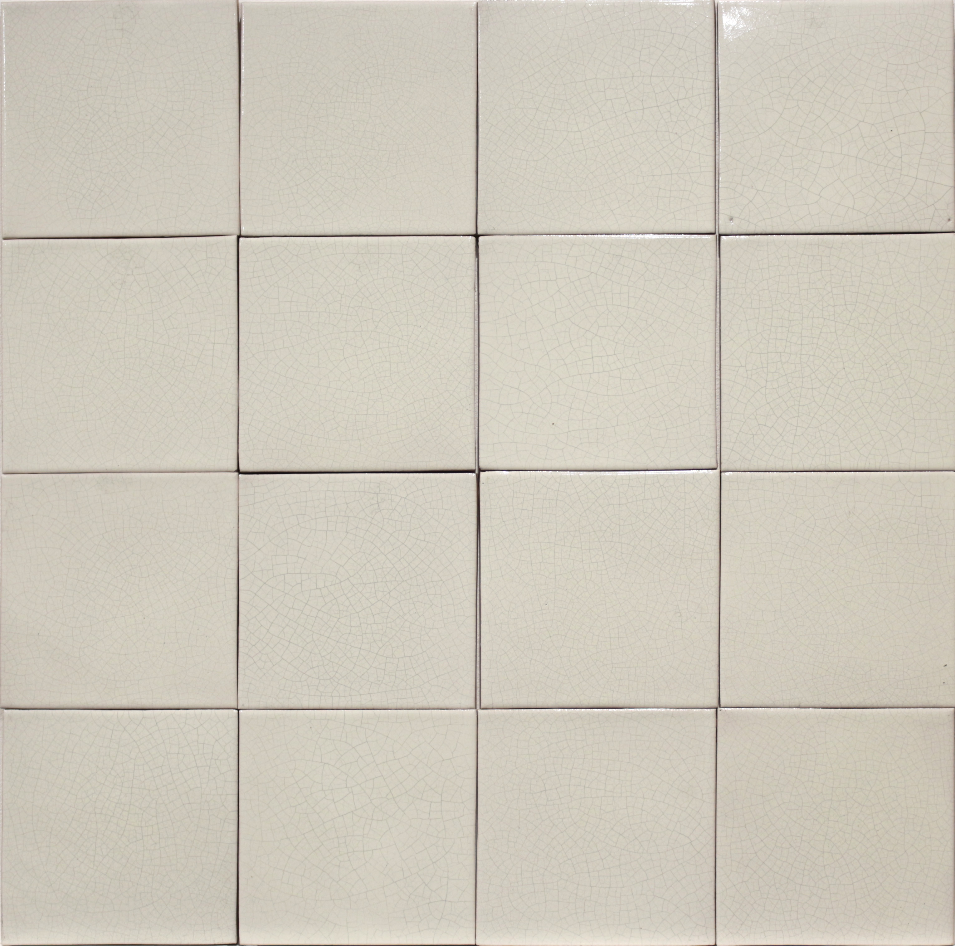 We have 104 x 6″ tiles covering 2.5 square metres, on a cream glaze with crackle.